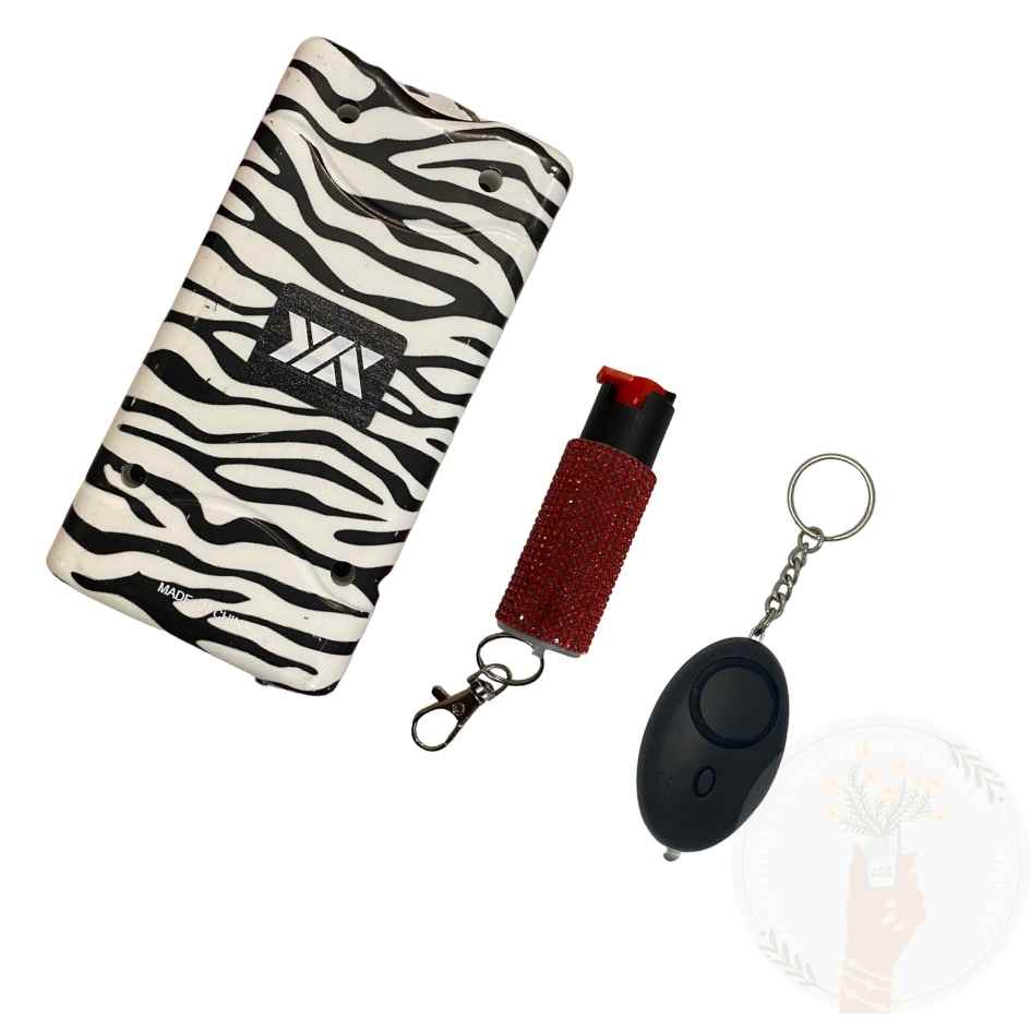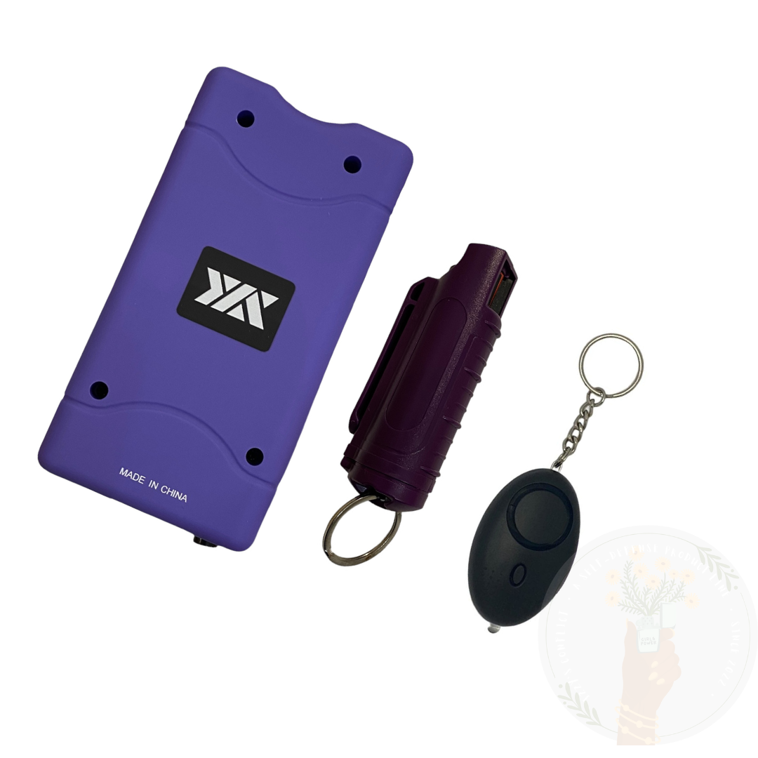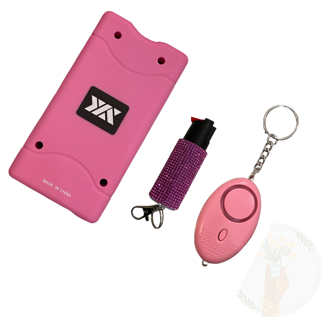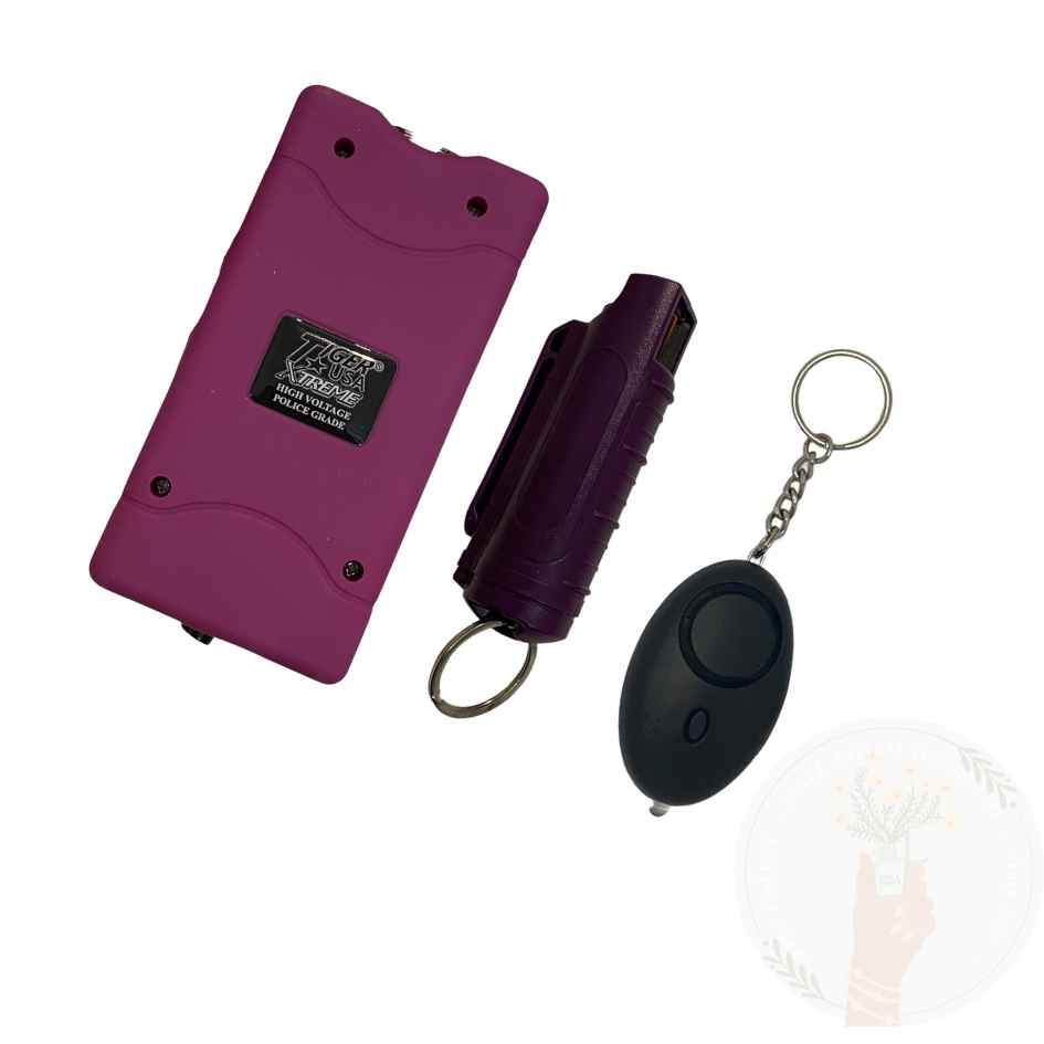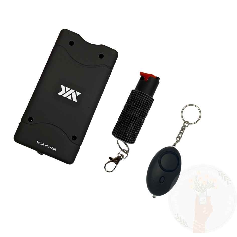 Stay prepared and protected with the Stun Gun/Personal Alarm/Pepper Spray Bundle, offering you comprehensive defense options for personal safety and self-defense in any situation.